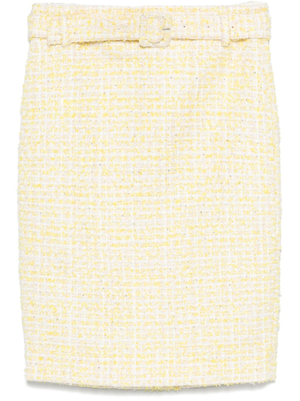 boucle midi skirt Highlights - Pastel yellow - Boucle design - Belt loops - Detachable waist belt - Central rear vent - Full lining - Concealed rear hook and zip fastening Imported Composition Lining: Polyester 100% Outer: Recycled Polyester 100% SIZE & FIT Model measurements Height 5 ft 10 in(1.78 m) Bust/Chest 33.07 in(84 cm) Hips 36.61 in(93 cm) Waist 24.8 in(63 cm) FittingInformation This midi-length skirt is intended to be worn high on the waist The belt offers adjustability for fitted preferences Made from a midweight non-stretch fabric This piece fits true to size – take your usual size Washing instructions Hand Wash