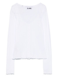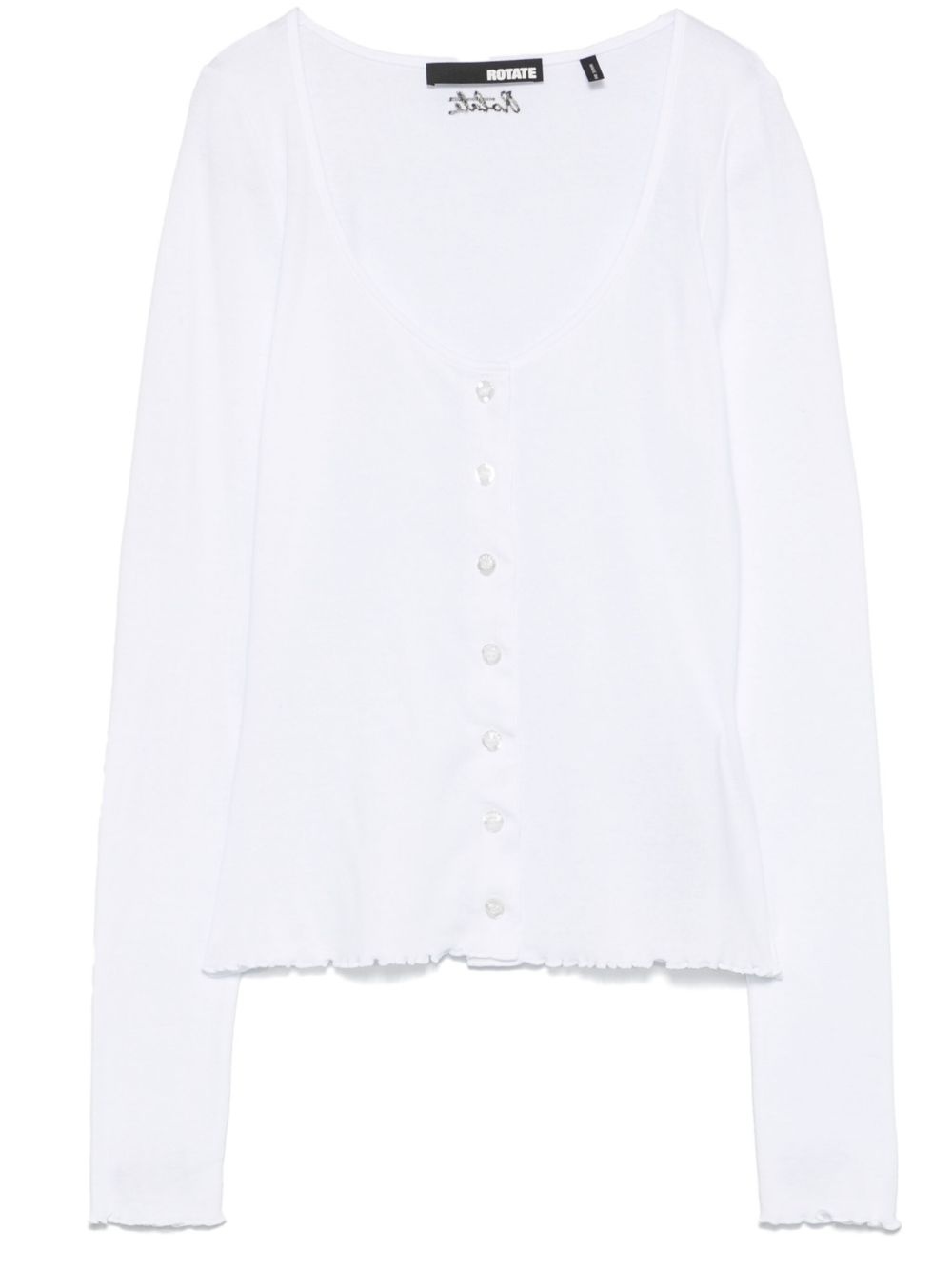button-up long-sleeve top Highlights - White - Front button fastening - Scoop neck - Embroidered logo to the rear - Lettuce hem Imported Composition Organic Cotton 100% Washing instructions Machine Wash