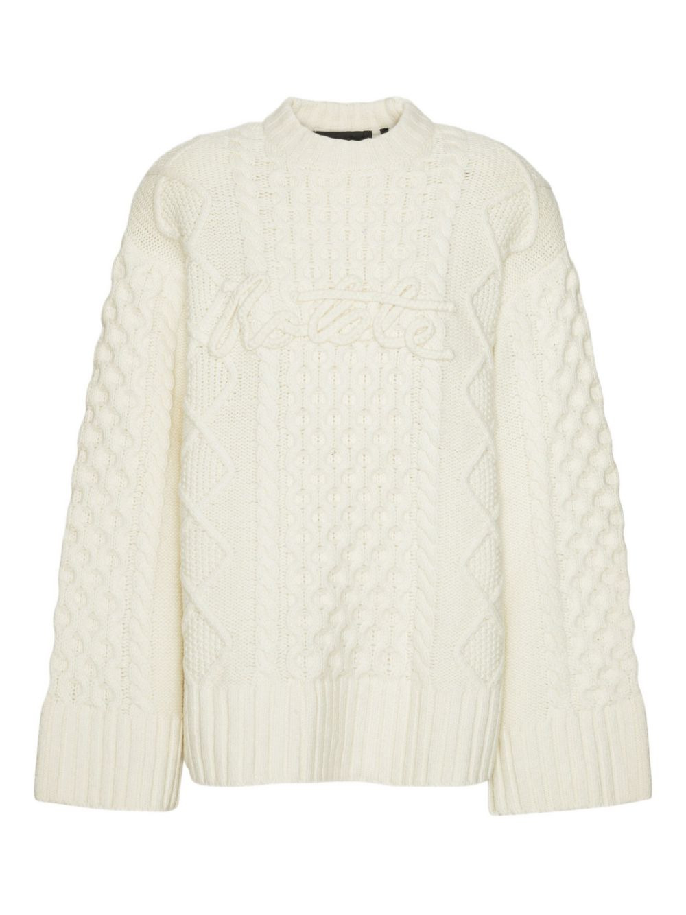 cable-knit crew-neck sweater Highlights - Off-white - Cable knit - Textured knit - Crew neck - Wide sleeves - Embroidered detail Imported Composition Wool 80%, Polyamide 20% Washing instructions Read Manufacturer Guidelines