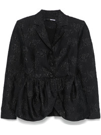 cloque-effect draped-detailing blazer Highlights - Black - Recycled polyester blend - Cloque effect - Draped design - Front button fastening - Notched lapels - Shoulder pads - Long sleeves - Partial lining - Peplum hem Imported Composition Other fibres 100% SIZE & FIT Model measurements Height 5 ft 10 in(1.78 m) Bust/Chest 31.49 in(80 cm) Hips 37 in(94 cm) Waist 23.62 in(60 cm) FittingInformation Designed for a slim fit that sits just away from the body offering a close yet comfortable fit The internal shoulder pads offer a structured shape Made from a midweight stretch fabric, this piece offers elasticity and flexibility when worn Washing instructions Dry Clean Only