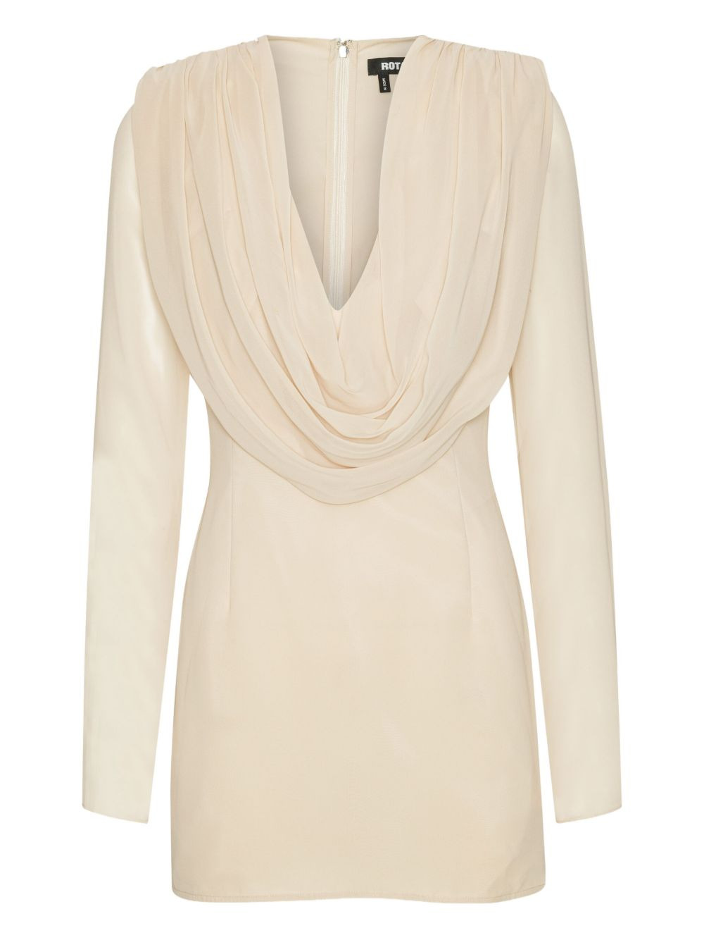 cowl-neck long-sleeve mini dress Highlights - Beige - Cowl neck - Long sleeves - Mini length Imported Composition Lining: Recycled Polyester 95%, Elastane 5% Outer: Recycled Polyester 100% Washing instructions Read Manufacturer Guidelines
