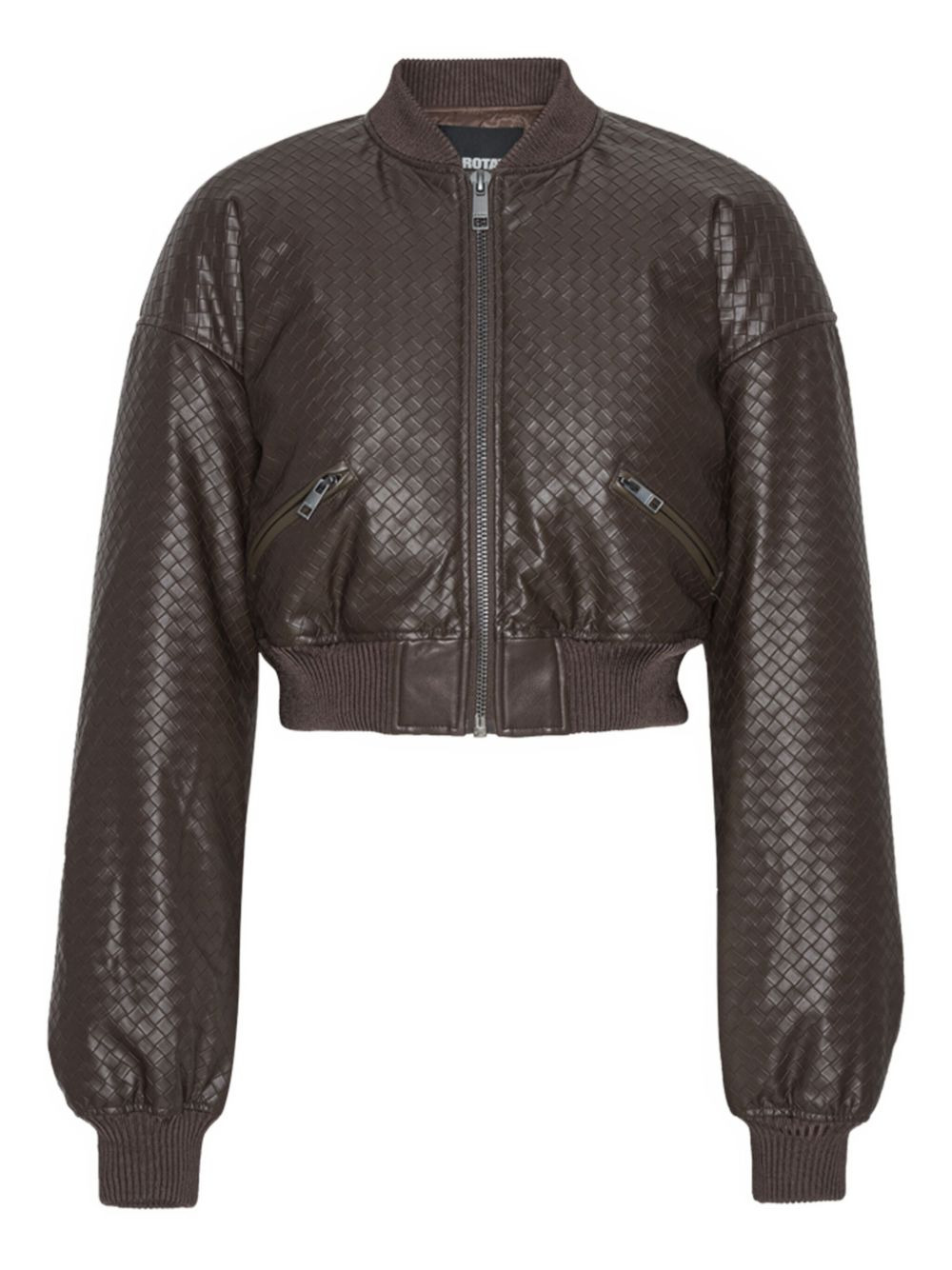 cropped puffer bomber jacket Highlights - Brown - Woven detailing - Zip front - Ribbed hem - Long sleeves Imported Composition Outer: Recycled Polyester 100% Lining: Polyester 52%, Viscose 48% Washing instructions Read Manufacturer Guidelines