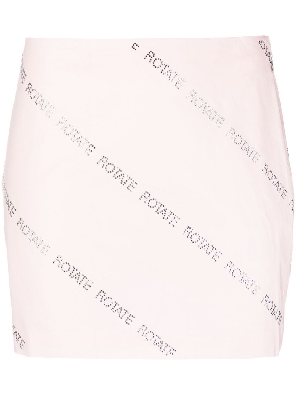 crystal-embellished miniskirt This ROTATE BIRGER CHRISTENSEN miniskirt speaks clearly to the brand's bold design DNA. The ultrashort silhouette is crafted from organic cotton poplin in light pink. Rhinestone logo embellishments spiral around the skirt for a branded sparkle. Highlights - Light pink - Organic cotton - Poplin texture - Rhinestone embellishment - Logo embellishment - Low-rise - Concealed side zip fastening - Straight hem - Thigh-length Imported Composition Lining: Cotton 100% Outer: Organic Cotton 100% SIZE & FIT Model measurements Height 5 ft 10 in(1.79 m) Bust/Chest 31.1 in(79 cm) Hips 35.03 in(89 cm) Waist 24.01 in(61 cm) FittingInformation This mini-length skirt is intended to be worn low on the hips Made from a lightweight non-stretch fabric This piece fits true to size – take your usual size