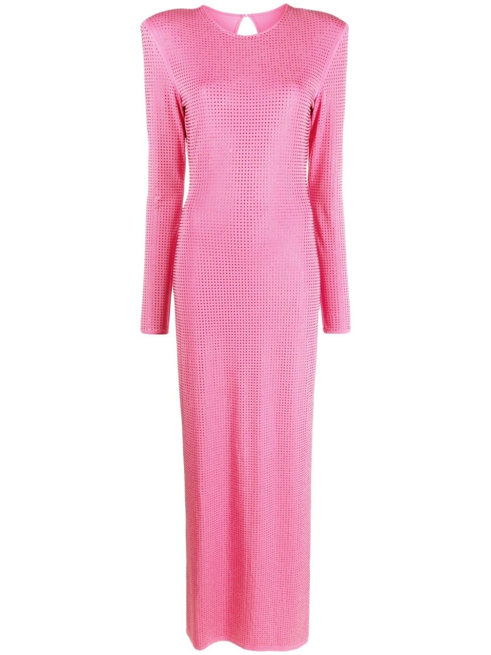 crystal-embellished open-back gown The vibrant pink hue and scores of crystals on this ROTATE BIRGER CHRISTENSEN dress draw inspiration from Paris’ baroque Hotel Costes and the late Vivienne Westwood. It’s cut from stretch-jersey with a skin-baring open back to balance the long sleeves and skirt. Highlights - Rose pink - Stretch-jersey - Crystal embellishment - Round neck - Rear button fastening - Shoulder pads - Long sleeves - Open back - Rear slit - Maxi - Straight hem Imported Composition Polyester 95%, Elastane 5% SIZE & FIT Model measurements Height 5 ft 10 in(1.77 m) Bust/Chest 34.64 in(88 cm) Hips 35.43 in(90 cm) Waist 24.8 in(63 cm) FittingInformation Designed for a close fit throughout The internal shoulder pads offer a structured shape Made from a midweight stretch fabric, this piece offers elasticity and flexibility when worn This piece fits true to size – take your usual size Washing instructions Hand Wash