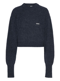 cuffed-sleeve crewneck sweater Highlights - Navy blue - Alpaca-wool blend - Cuffed sleeves - Ribbed texture - Crew neck - Logo detail Imported Composition Alpaca 55%, Recycled Polyamide 22%, Wool 15%, Polyamide 8% Washing instructions Hand Wash