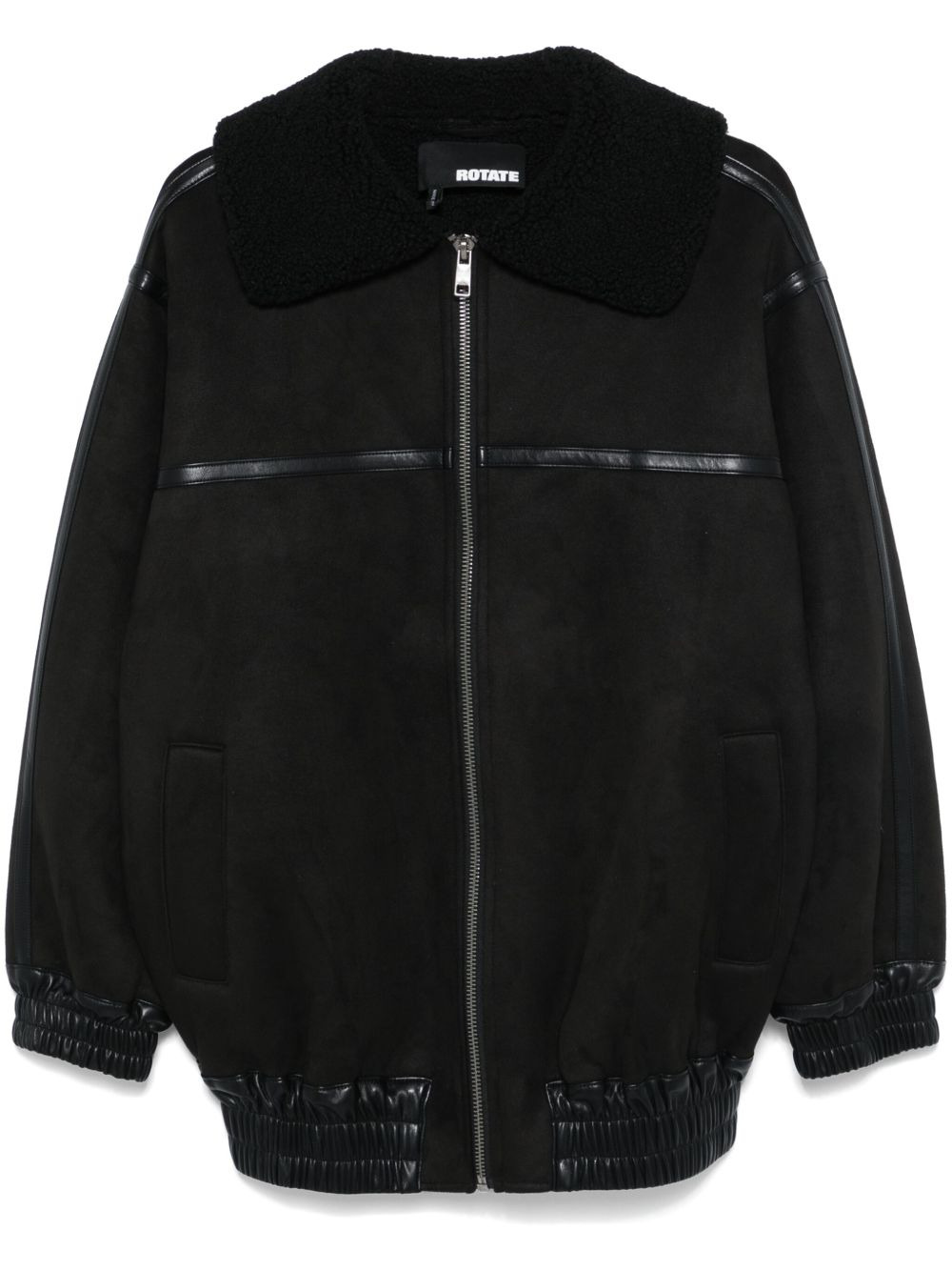 faux-leather bomber jacket Highlights - Black - Recycled polyester - Faux leather - Front zip fastening - Branded zip puller - Shearling collar - Long sleeves - Elasticated cuffs - Two front welt pockets - Faux-shearling lining - Elasticated hem Imported Composition Outer: Polyester 100% Lining: Recycled Polyester 100% SIZE & FIT Model measurements Height 5 ft 10 in(1.78 m) Bust/Chest 33.85 in(86 cm) Hips 36.61 in(93 cm) Waist 26.77 in(68 cm) FittingInformation Designed to be unstructured, offering a loose fit throughout The elasticated hem allows for movement and a comfortable fit Made from a midweight non-stretch fabric Washing instructions Do Not Wash/Do Not Dry Clean