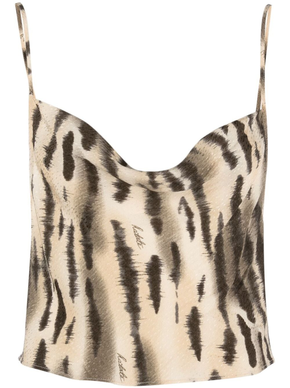 fine-jacquard open-back top ROTATE BIRGER CHRISTENSEN imbues its effortless style into this top for SS23. The cropped silhouette plays host to an animal-inspired print and fine jacquard detailing while the cowl neck and open back combine for a charming aesthetic. Highlights - Beige/black - Fine jacquard - Animal print - Cowl neck - Thin shoulder straps - Square open back - Cropped Imported Composition Viscose 100% SIZE & FIT Model measurements Height 5 ft 10 in(1.79 m) Bust/Chest 31.1 in(79 cm) Hips 35.03 in(89 cm) Waist 24.01 in(61 cm) FittingInformation Designed for a slim fit that sits just away from the body offering a close yet comfortable fit Cropped in length Made from a lightweight non-stretch fabric This piece fits true to size – take your usual size