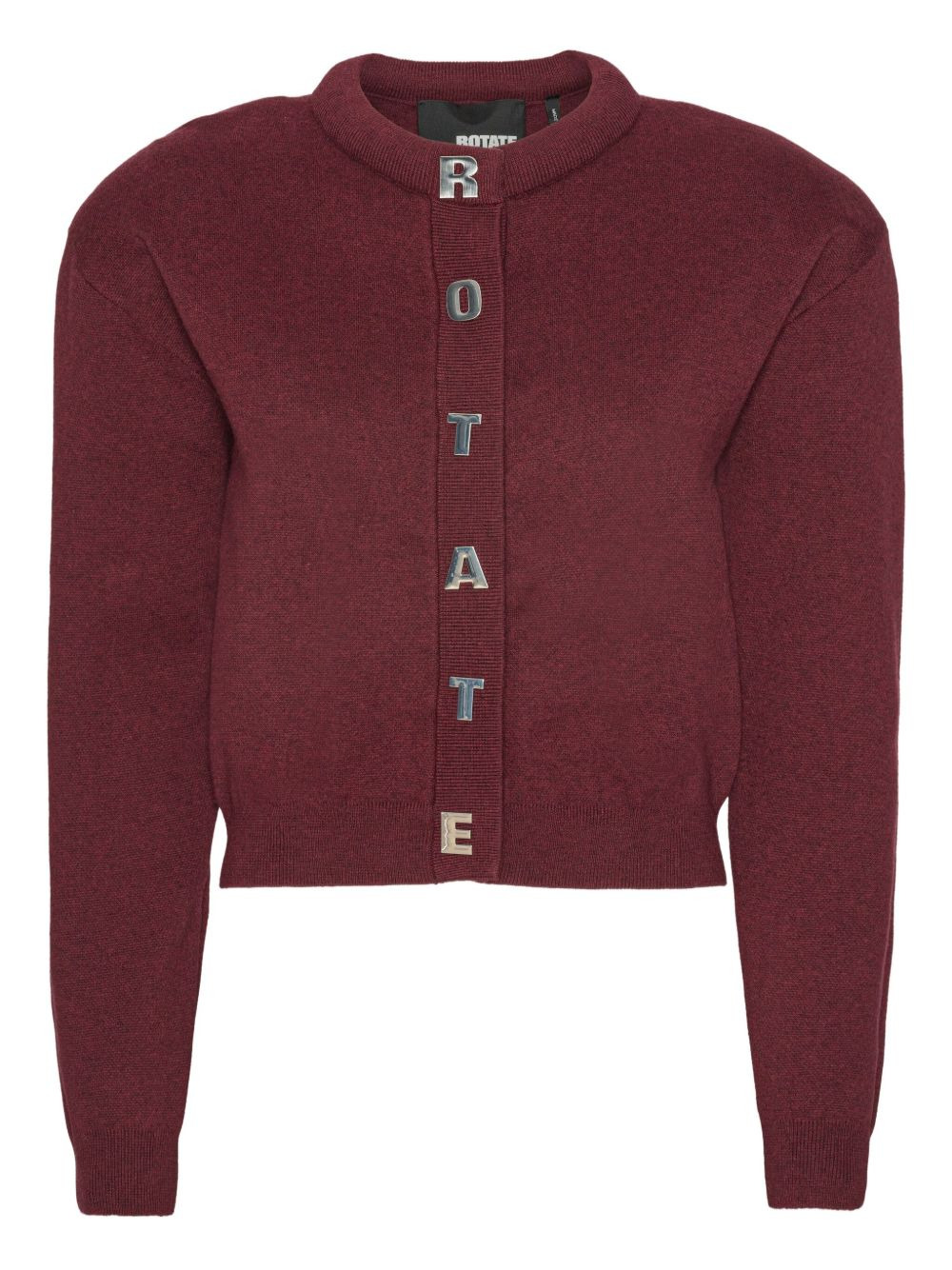 firm knit cardigan Highlights - Burgundy - Letter embellishment - Round neck - Front button fastening - Long sleeves Imported Composition Organic Cotton 95%, Cashmere 5% Washing instructions Read Manufacturer Guidelines