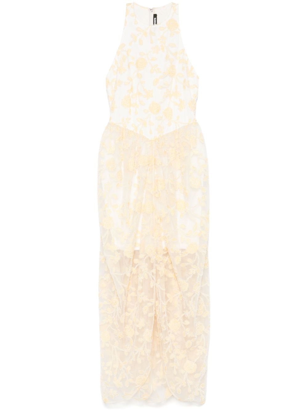 floral-beaded midi dress Highlights - Light yellow - Concealed rear hook and zip fastening - Front slit - Tulle overlay - Floral embroidery Imported Composition Lining: Polyester 95%, Elastane 5% Outer: Recycled Polyester 100% SIZE & FIT Model measurements Height 5 ft 9 in(1.76 m) Bust/Chest 31.1 in(79 cm) Hips 36.61 in(93 cm) Waist 24.8 in(63 cm) FittingInformation Designed for a close fit at the chest and waist with a loose fit at the hip Made from a midweight fabric