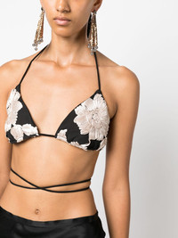 floral-embroidered halterneck bra top