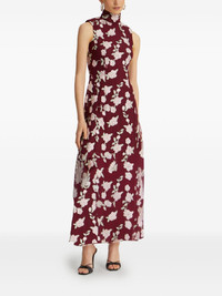 Sleeveless Bordeaux Flower Print Maxi Dress