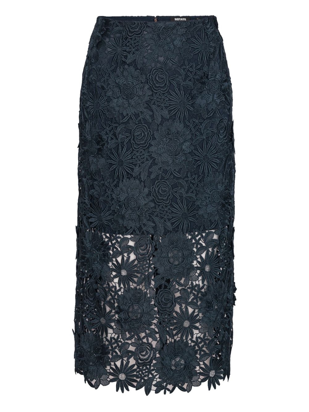 floral-lace midi skirt Highlights - Blue - Floral pattern - Zip fastening - Midi length Imported Composition Lining: Polyester 95%, Elastane 5% Outer: Recycled Polyester 100% Washing instructions Hand Wash