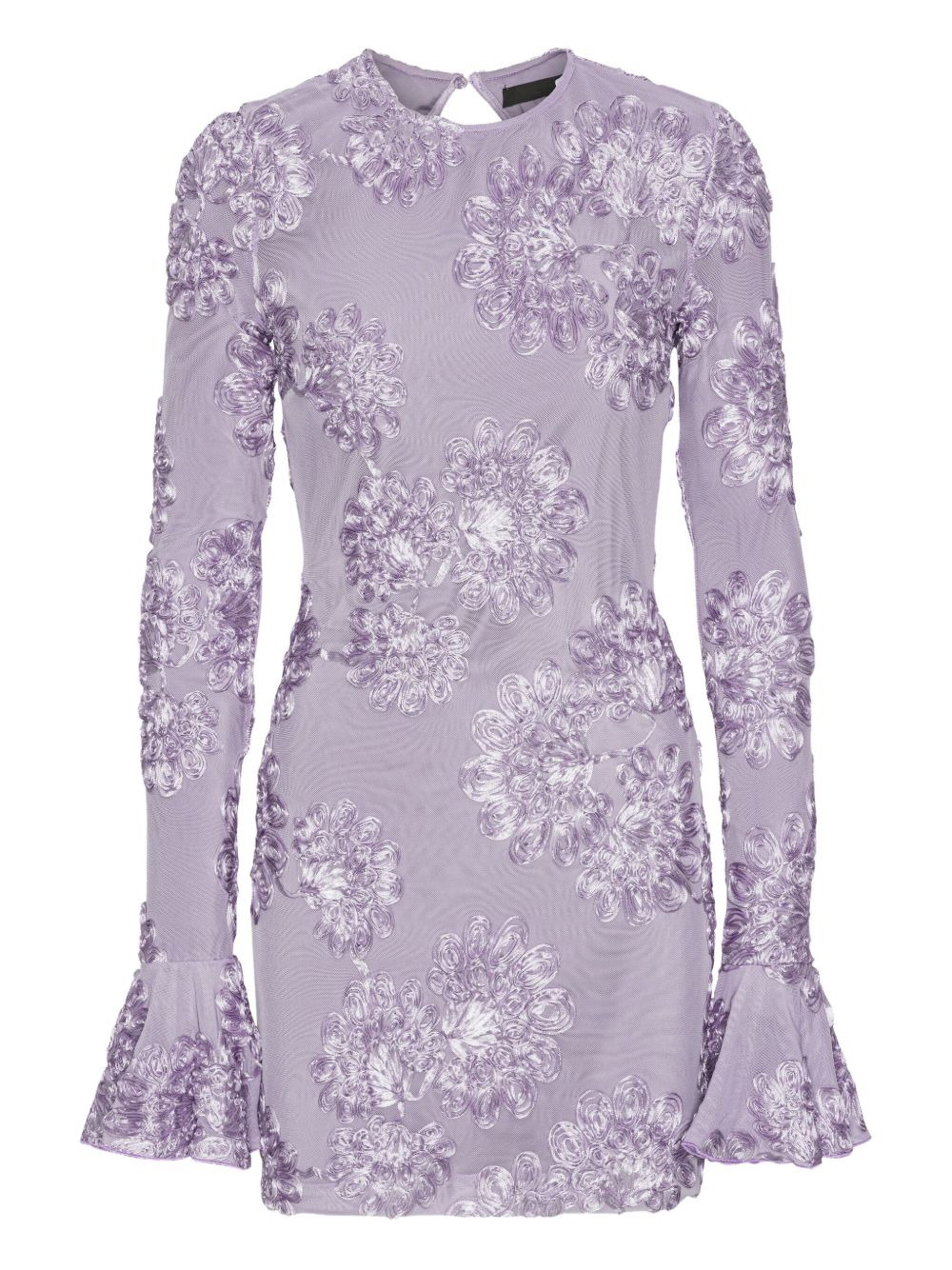 floral mesh dress Highlights - Light purple - Mesh fabric - Long sleeves - Flared cuffs - Crew neck Imported Composition Lining: Polyester 88%, Elastane 12% Outer: Polyester 100%, Recycled Polyester 95%, Elastane 5% Washing instructions Hand Wash