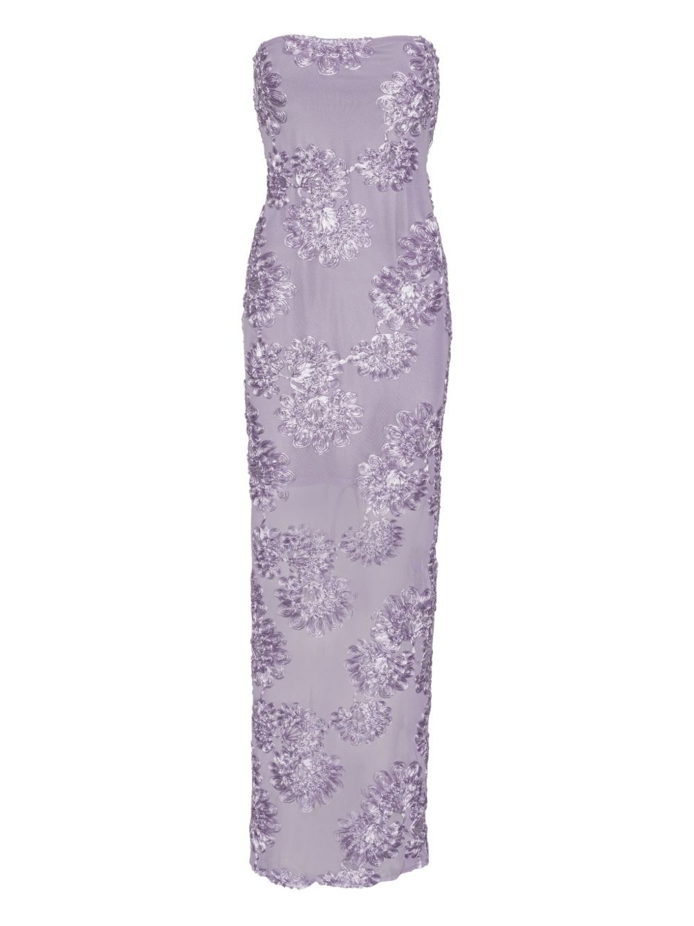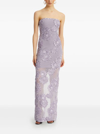 floral-mesh maxi dress Highlights - Purple - Floral embellishment - Mesh fabric - Strapless neckline - Back zip fastening - Thigh-high split Imported Composition Lining: Polyester 88%, Elastane 12% Outer: Polyester 100%, Recycled Polyester 95%, Elastane 5% Washing instructions Hand Wash