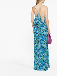 floral-print maxi dress This maxi dress encapsulates ROTATE BIRGER CHRISTENSEN’s maximalist aesthetic, thanks to the tonal blue floral print. Ultra-thin straps and draped detailing at the back add a refined touch. Highlights - Blue - Recycled polyester - Crepe texture - All-over floral print - Draped detailing - Square neck - Spaghetti straps - Floor-length Imported Composition Lining: Recycled Polyester 100% Outer: Recycled Polyester 100% SIZE & FIT Model measurements Height 5 ft 9 in(1.75 m) Bust/Chest 31.49 in(80 cm) Hips 34.05 in(86.5 cm) Waist 24.21 in(61.5 cm) FittingInformation Designed for a close fit at the chest and waist with a loose fit at the hip The elasticated waist allows for a comfortable fit Made from a midweight non-stretch fabric This piece fits true to size – take your usual size