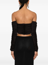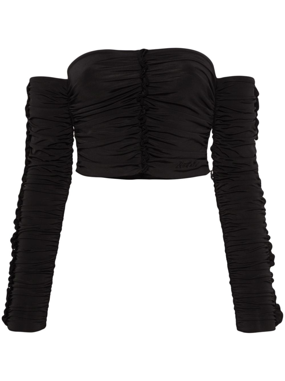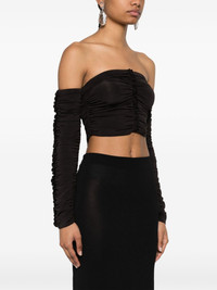 gathered crop top Highlights - Black - Stretch-design - Gathered design - Square neck - Long puff sleeves - Ruched detailing at the side - Logo charm at the side - Embroidered logo to the front - Cropped Made in Italy Composition Viscose 93%, Spandex/Elastane 7% SIZE & FIT Model measurements Height 5 ft 10 in(1.78 m) Bust/Chest 32.67 in(83 cm) Hips 35.43 in(90 cm) Waist 23.22 in(59 cm) FittingInformation Designed for a close fit throughout Made from a midweight stretch fabric, this piece offers elasticity and flexibility when worn This piece fits true to size – take your usual size