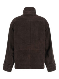 high-neck oversized jacket Highlights - Brown - High neck - Elastic drawstring hem - Pockets - Long sleeves - Strap-on cuffs Imported Composition Outer: Goat Skin 100% Lining: Polyester 54%, Viscose 46%
