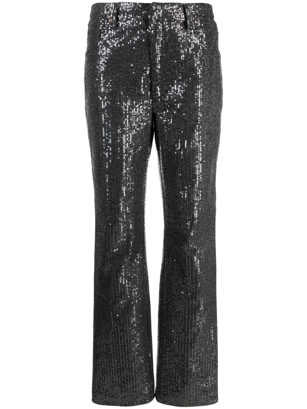 high-waisted sequin-embellished jeans Never one to shy away from the limelight, ROTATE BIRGER CHRISTENSEN channels a shimmering aesthetic with these jeans. The pair are defined by the all-over sequin embellishments that adorn the high-waisted silhouette for an undeniably striking look. Highlights - Black - Recycled polyester - Recycled cotton - Sequin design - Concealed front fastening - Belt loops - Classic five pockets Imported Composition Outer: Recycled Polyester 100%, Recycled Cotton 100% Lining: Polyester 92%, Elastane 8% SIZE & FIT Model measurements Height 5 ft 10 in(1.77 m) Bust/Chest 33.07 in(84 cm) Hips 37 in(94 cm) Waist 24.8 in(63 cm) Washing instructions Dry Clean Only