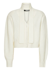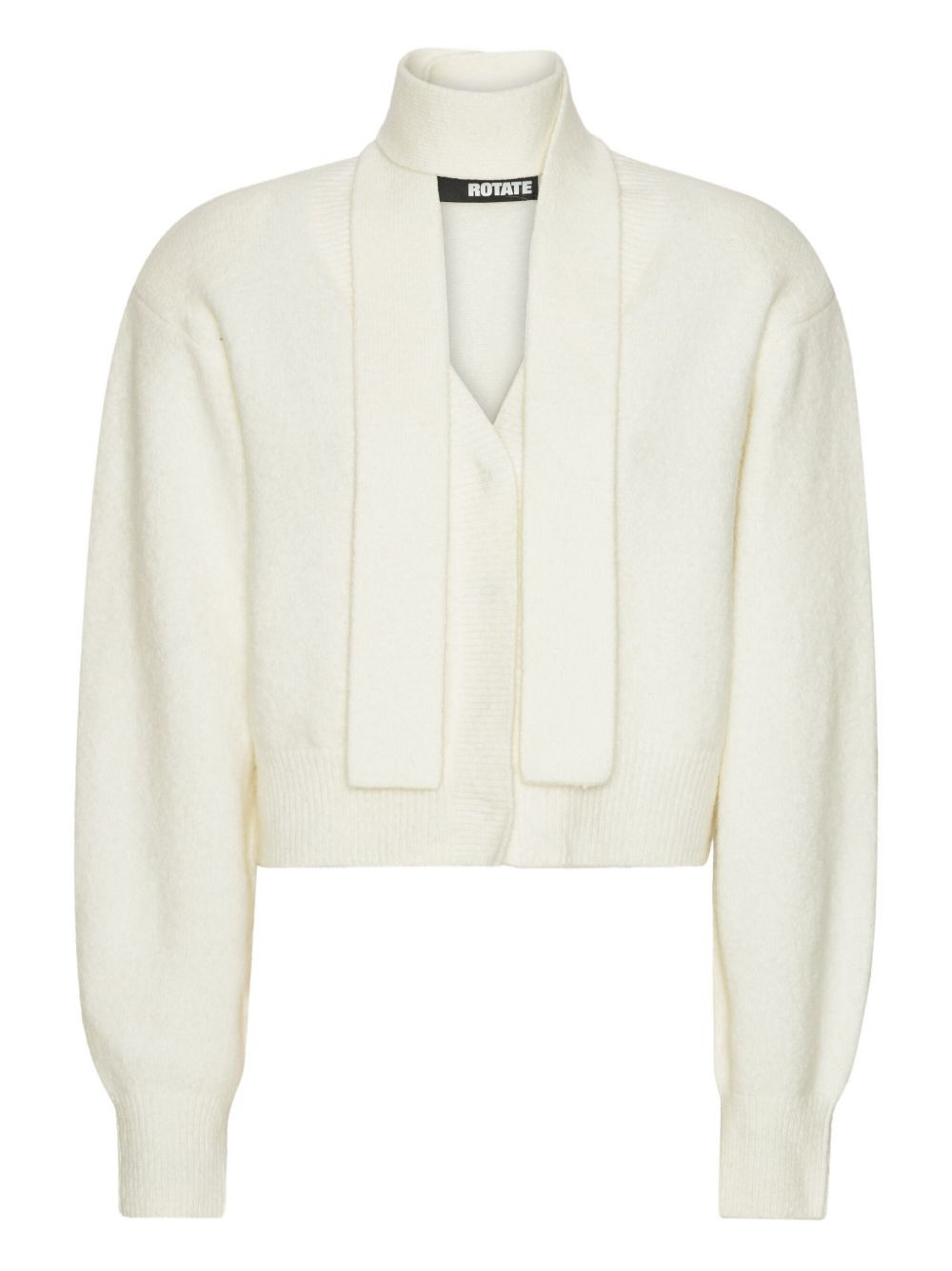 knit scarf-neck cardigan Highlights - Off-white - Button front - Scarf neck detail - Cropped length - Balloon sleeves Imported Composition Alpaca 32%, Wool 32%, Polyester 30%, Elastane 6% Washing instructions Read Manufacturer Guidelines