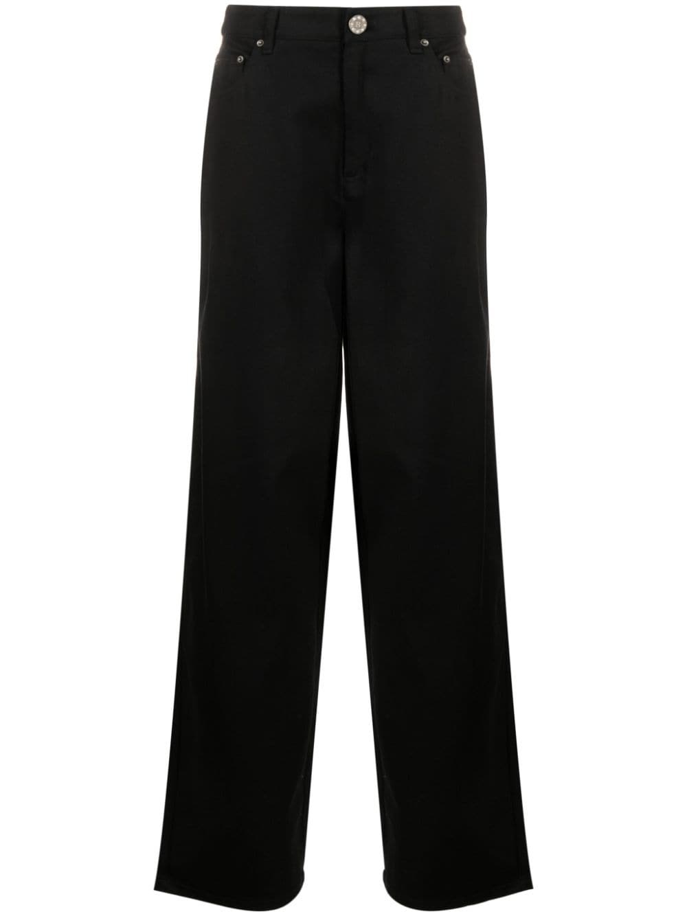 logo-embellished straight-leg jeans These ROTATE BIRGER CHRISTENSEN jeans are given a shimmering twist in the form of a crystal-studded logo strap at the back of the high-rise waistband to match the equally embellished ‘R’ buttons. They’re cut to a relaxed straight-leg silhouette from organic cotton for a lower impact. Highlights - Black - Organic cotton - Denim - Dark wash - Logo embellishment - Crystal embellishment - High-waisted - Belt loops - Concealed fly and button fastening - Classic five pockets - Wide leg Imported Composition Organic Cotton 100% SIZE & FIT Model measurements Height 5 ft 10 in(1.79 m) Bust/Chest 32.67 in(83 cm) Hips 34.25 in(87 cm) Waist 24.4 in(62 cm) FittingInformation Designed for a straight-leg fit, these jeans allow for a close fit at the waist and an unrestricted and comfortable fit over the leg Sturdy and hard-wearing, this denim piece offers no stretch This piece fits true to size – take your usual size Washing instructions Hand Wash