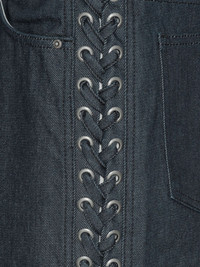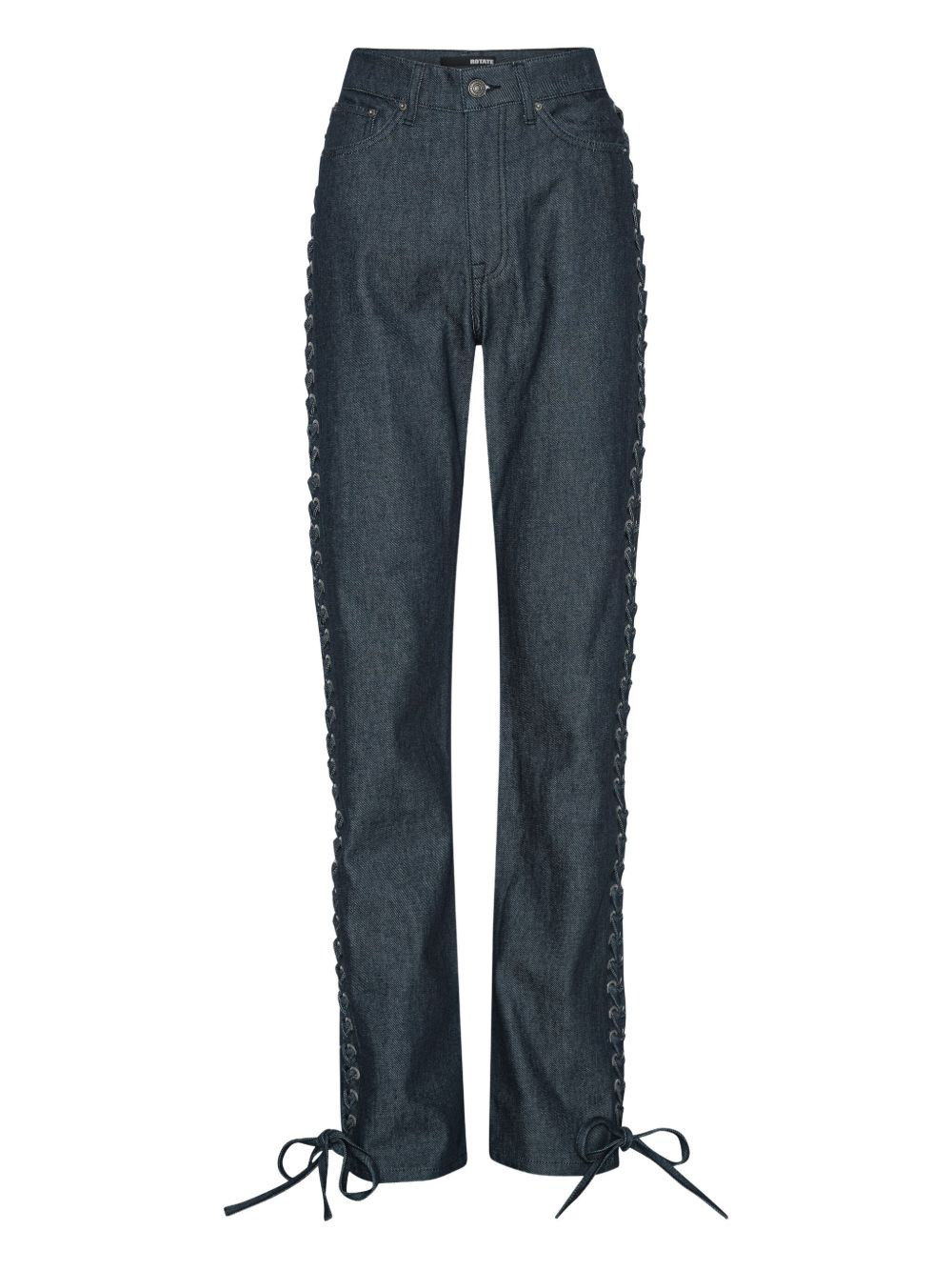 logo-patch tie-details jeans Highlights - Blue - Tie detailing - Silver-tone eyelets - Organic cotton - Logo patch - Belt loops - Button fastening Imported Composition Organic Cotton 100% Washing instructions Specialist Cleaning