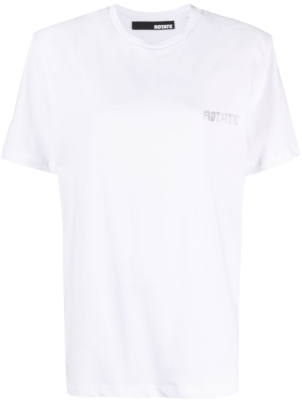 logo-print organic-cotton T-shirt Born in response to the creative directors' need to upgrade their wardrobes, ROTATE BIRGER CHRISTENSEN's mission continues in SS23 through a soft organic cotton T-shirt, detailed with the brand's logo and a contrasting broken heart at the back. Highlights - White/multicolour - Organic cotton - Logo print to the front - Heart print - Crew neck - Short sleeves - Straight hem Imported Composition Organic Cotton 100% SIZE & FIT Model measurements Height 5 ft 10 in(1.77 m) Bust/Chest 32.67 in(83 cm) Hips 35.43 in(90 cm) Waist 23.62 in(60 cm) FittingInformation Designed for a boxy fit, intended for a loose fit throughout The internal shoulder pads offer a structured shape Made from a midweight non-stretch fabric, this piece offers minimal elasticity when worn This piece fits true to size – take your usual size Washing instructions Machine Wash