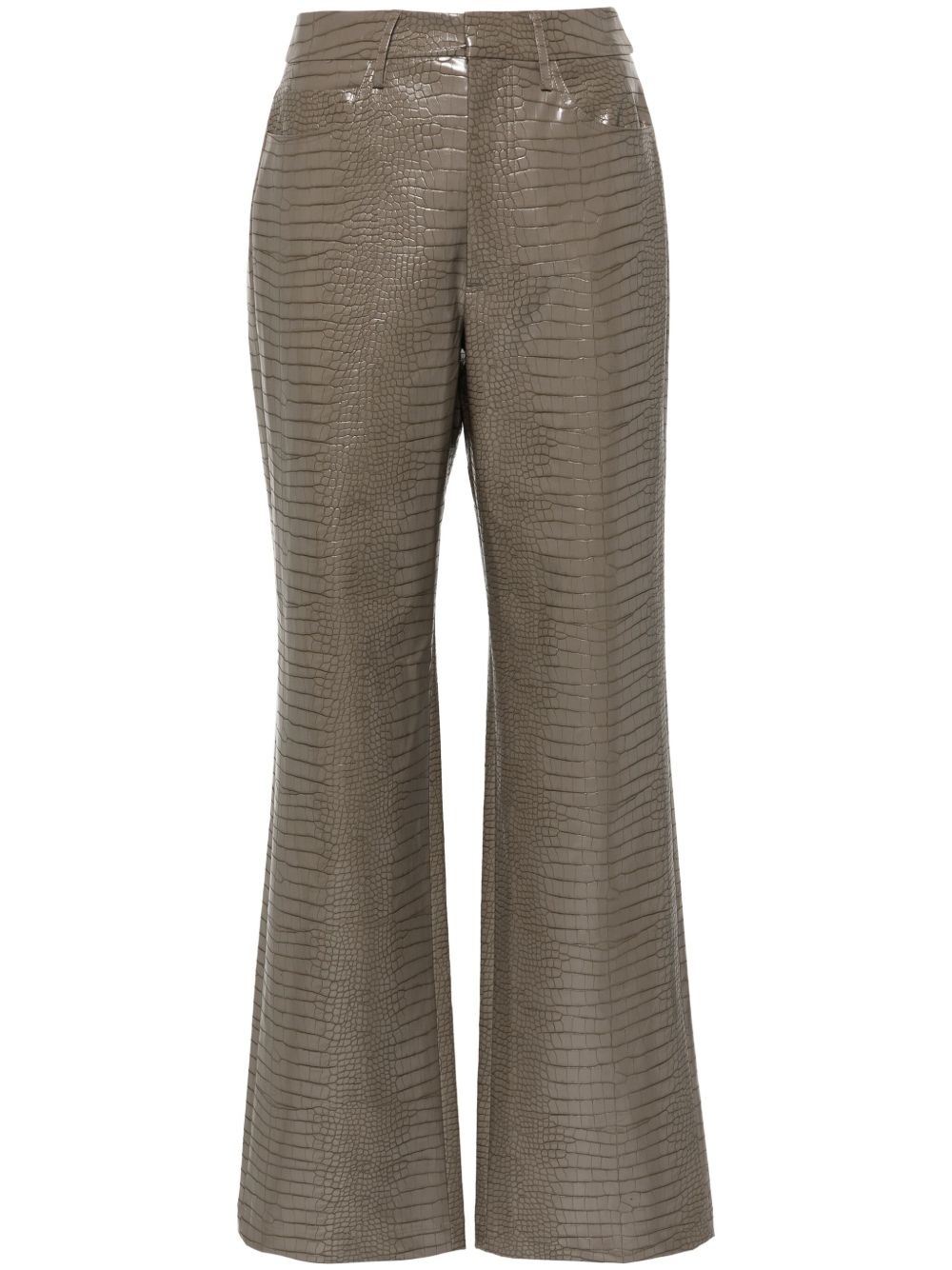 mid-rise straight-leg trousers Highlights - Taupe brown - Faux leather - Snakeskin effect - Mid-rise - Straight leg - Classic five pockets - Belt loops - Concealed front button, hook and zip fastening - Unlined Imported Composition Polyester 100% SIZE & FIT Model measurements Height 5 ft 10 in(1.78 m) Bust/Chest 33.07 in(84 cm) Hips 36.61 in(93 cm) Waist 24.8 in(63 cm) FittingInformation Designed for a straight-leg fit, these trousers allow for a close fit at the waist and an unrestricted, comfortable fit over the leg Made from a midweight fabric This piece fits true to size – take your usual size Washing instructions Dry Clean Only