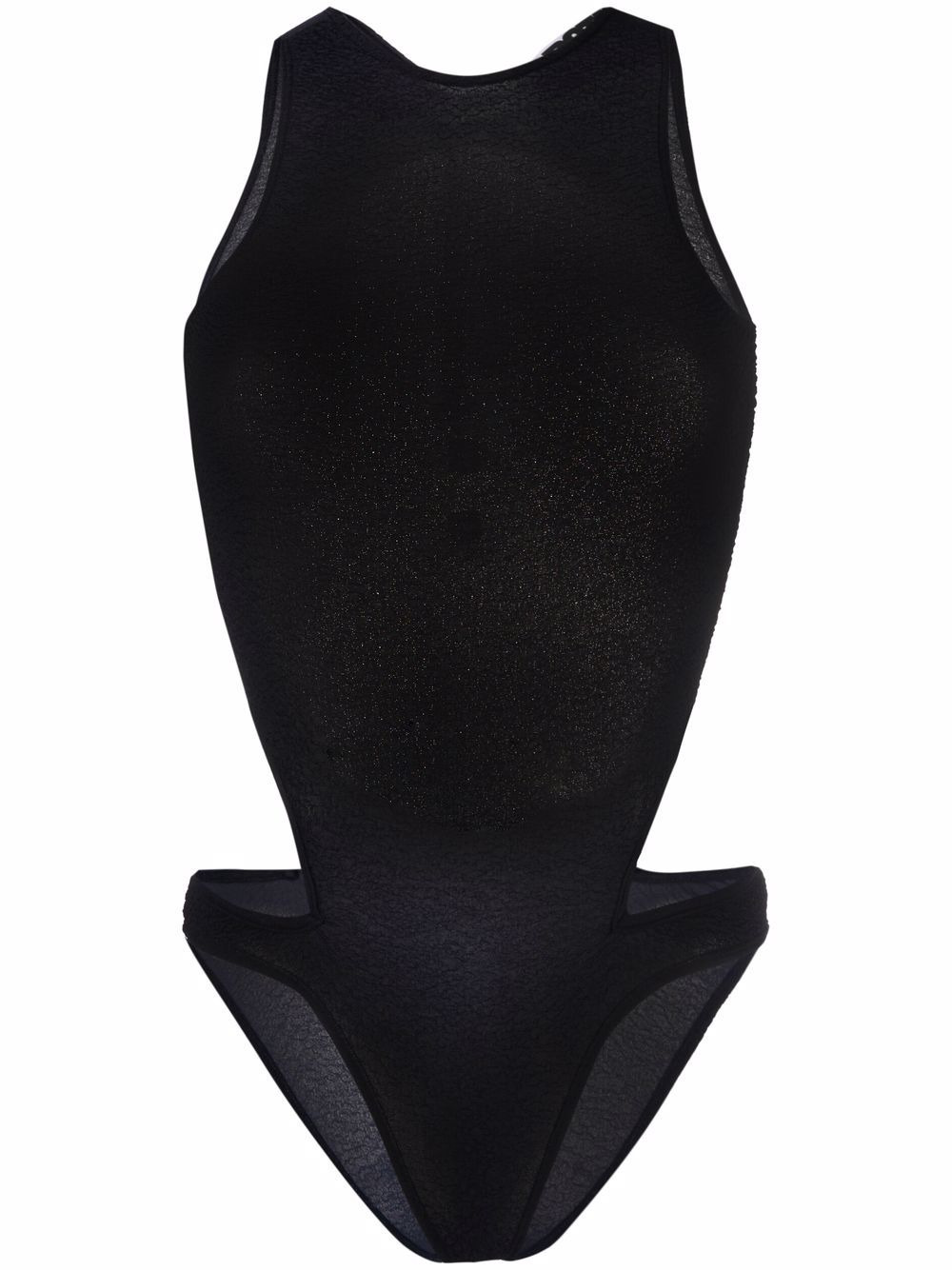 Molly semi-sheer bodysuit Highlights - Dark sapphire blue - Semi-sheer construction - Crew neck - Rear hook fastening - Open back - Sleeveless - Just a reminder that this piece must be tried on over your own garments. Imported Composition Lining: Polyester 100% Outer: Polyester 96%, Spandex/Elastane 4% Washing instructions Machine Wash