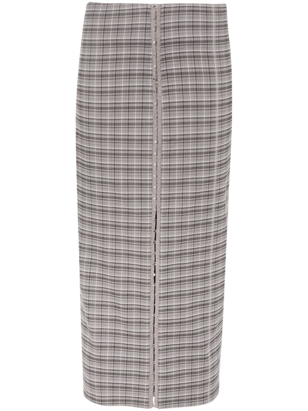 Palmer checked midi skirt Highlights - Grey - Stretch-jersey - Check pattern - High waist - Front hook and eye fastening - Mid-length - Straight hem - Full lining - Concealed rear zip fastening Imported Composition Outer: Viscose 75%, Polyester 11%, Polyamide 11%, Elastane 3% Lining: Polyester 92%, Elastane 8% SIZE & FIT Model measurements Height 5 ft 11 in(1.8 m) Bust/Chest 30.7 in(78 cm) Hips 35.03 in(89 cm) Waist 24.4 in(62 cm) FittingInformation This midi-length skirt is intended to be worn high on the waist Made from a midweight stretch fabric, this piece offers elasticity and flexibility when worn This piece fits true to size – take your usual size