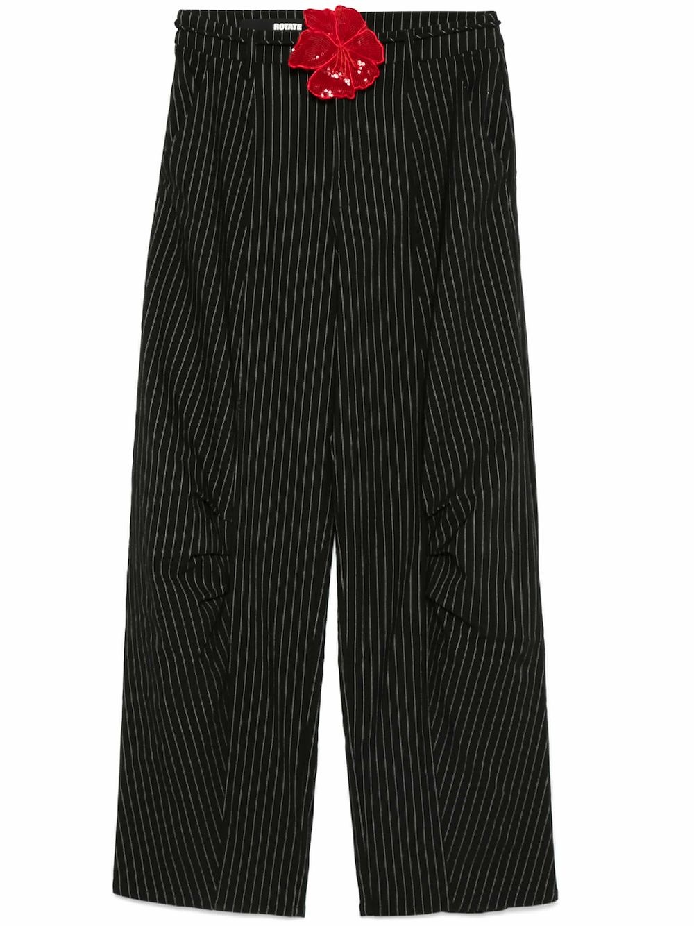 pinstripe cargo trousers Highlights - Black/white - Pinstripe pattern - Concealed front button, hook and zip fastening - Belt loops - Tied waist - Floral applique - Two diagonal pockets to the sides - Rear patch pocket - Tapered leg Imported Composition Outer: Viscose 75%, Polyester 11%, Polyamide 11%, Elastane 3% Lining: Polyester 92%, Elastane 8% SIZE & FIT Model measurements Height 5 ft 9 in(1.75 m) Bust/Chest 31.88 in(81 cm) Hips 34.64 in(88 cm) Waist 24.01 in(61 cm) FittingInformation Designed for a tapered fit, these trousers allow for a close fit at the waist and a loose unrestricted fit over the leg with a closer fit towards the ankle The tie fastening gives an adaptable and personalised fit Made from a midweight stretch fabric, this piece offers elasticity and flexibility when worn