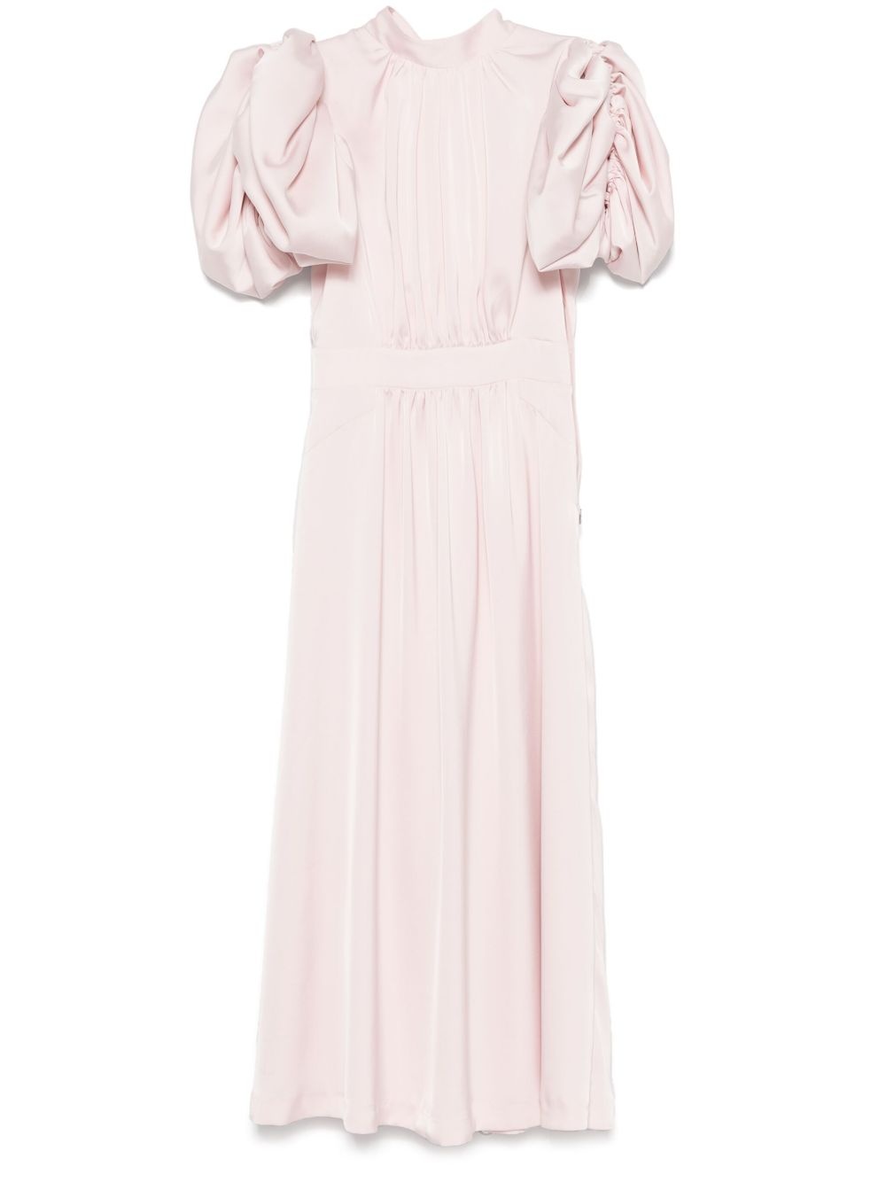 puff-sleeve satin midi dress