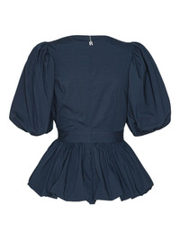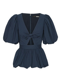 puff-sleeve top Highlights - Navy blue - Puff sleeves - Front knot detail - Fitted bodice - Bubble hem Imported Composition Lining: Polyester 90%, Elastane 10% Outer: Organic Cotton 97%, Elastane 3% Washing instructions Machine Wash