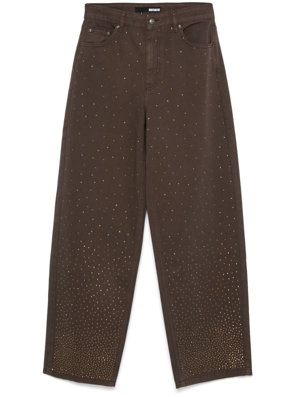 rhinestone-embellished wide-leg jeans Highlights - Chocolate brown - Cotton - Denim - Rhinestone embellishment - Wide leg - Front button and zip fastening - Belt loops - Classic five pockets - Logo patch to the rear Imported Composition Cotton 100% SIZE & FIT Model measurements Height 5 ft 9 in(1.75 m) Bust/Chest 31.88 in(81 cm) Hips 34.64 in(88 cm) Waist 24.01 in(61 cm) FittingInformation Designed with a wide leg cut, these jeans allow for a close fit at the waist and offer a loose and roomy fit over the leg Sturdy and hard-wearing, this denim piece offers no stretch Washing instructions Machine Wash