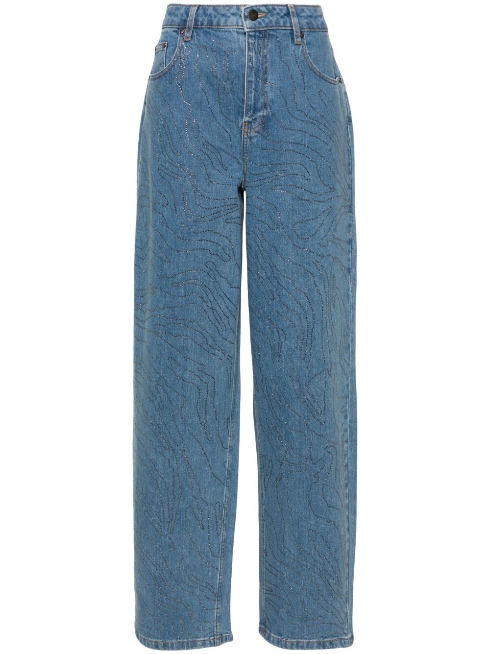rhinestone-embellished wide-leg jeans Highlights - Blue - Stretch organic cotton - Denim - Rhinestone embellishment - Contrasting heel counter - Belt loops - Classic five pockets - Wide leg - Concealed fly and button fastening Imported Composition Organic Cotton 99%, Elastane 1% Washing instructions Machine Wash