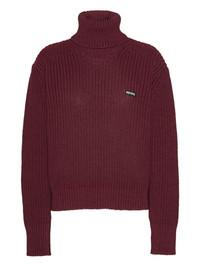 roll-neck sweater Highlights - Burgundy - Merino-cotton blend - Roll neck - Logo label Imported Composition Merino 55%, Organic Cotton 45% Washing instructions Read Manufacturer Guidelines
