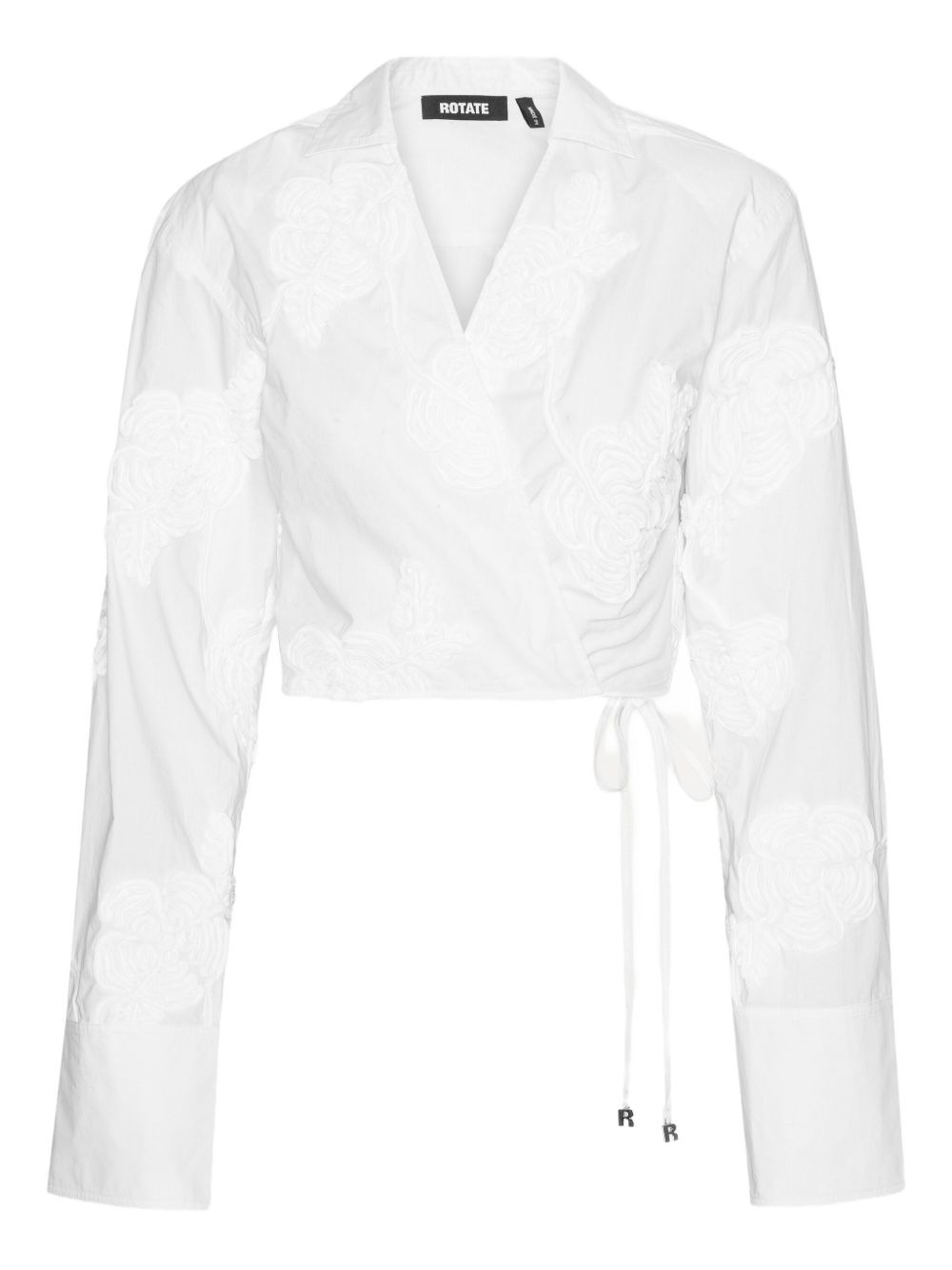 rose-embroidery wrap shirt Highlights - White - Organic cotton - Wrap fastening - Long sleeves - Rose embellishment - Cropped length Imported Composition Polyester 100%, Organic Cotton 100% Washing instructions Dry Clean Only