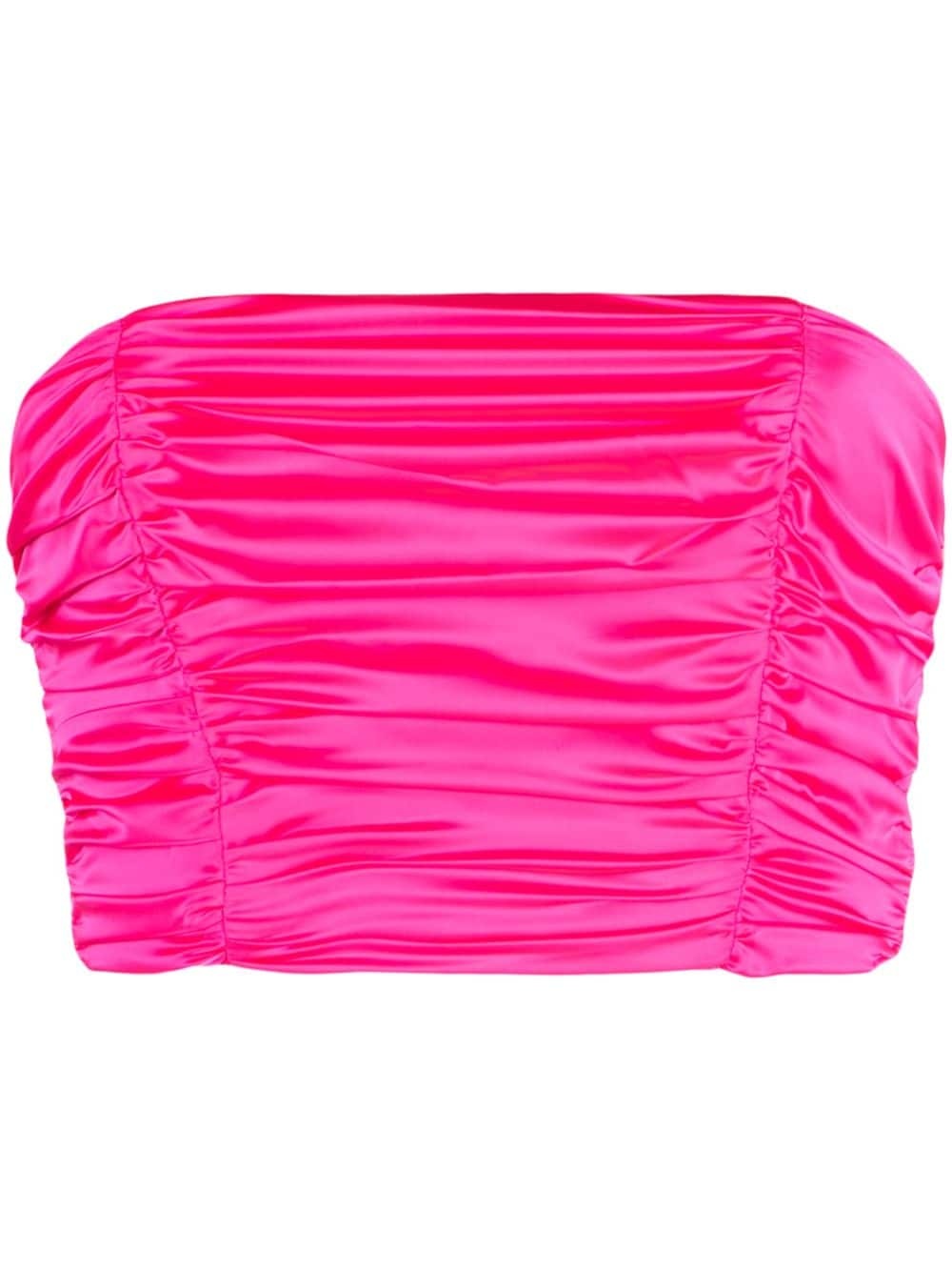 ruched satin cropped top Highlights - Fluorescent pink - Recycled polyester blend - Satin finish - Ruched bodice - Strapless - Rear zip fastening - Cropped - Straight hem Imported Composition Lining: Polyester 92%, Spandex/Elastane 8% Outer: Recycled Polyester 57%, Polyester 43% SIZE & FIT Model measurements Height 5 ft 10 in(1.77 m) Bust/Chest 34.64 in(88 cm) Hips 35.43 in(90 cm) Waist 24.8 in(63 cm) FittingInformation Designed for a close fit throughout Cropped in length Made from a midweight non-stretch fabric This piece fits true to size – take your usual size Washing instructions Hand Wash