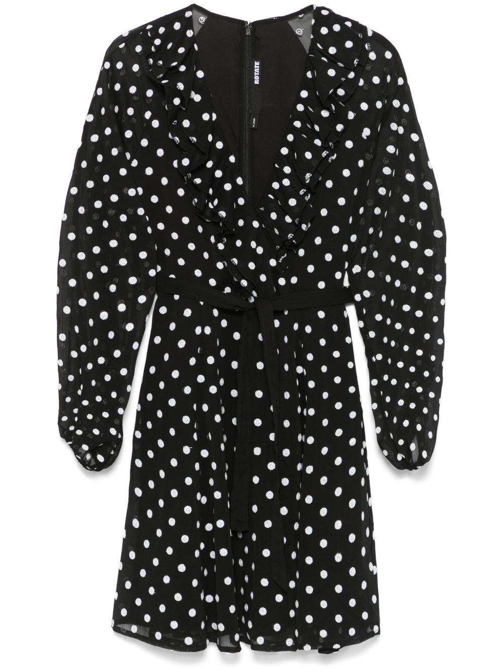 ruffle-detail chiffon mini dress Highlights - Black - Recycled polyester - Chiffon crepe - Ruffle collar - Concealed rear zip fastening - Polka dot sequin embroidery - V-neck - Semi-sheer long puff sleeves - Elasticated cuffs - Fitted waistline - Belt loops - Detachable and adjustable waist tie - Flared skirt - Partial lining - Straight hem - Above-knee length Imported Composition Lining: Polyester 92%, Elastane 8% Outer: Recycled Polyester 100% SIZE & FIT Model measurements Height 5 ft 11 in(1.8 m) Bust/Chest 33.07 in(84 cm) Hips 37.4 in(95 cm) Waist 25.19 in(64 cm) FittingInformation Designed for a relaxed fit, this piece allows for comfort and movement when worn The belt offers adjustability for fitted preferences Made from a midweight non-stretch fabric