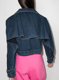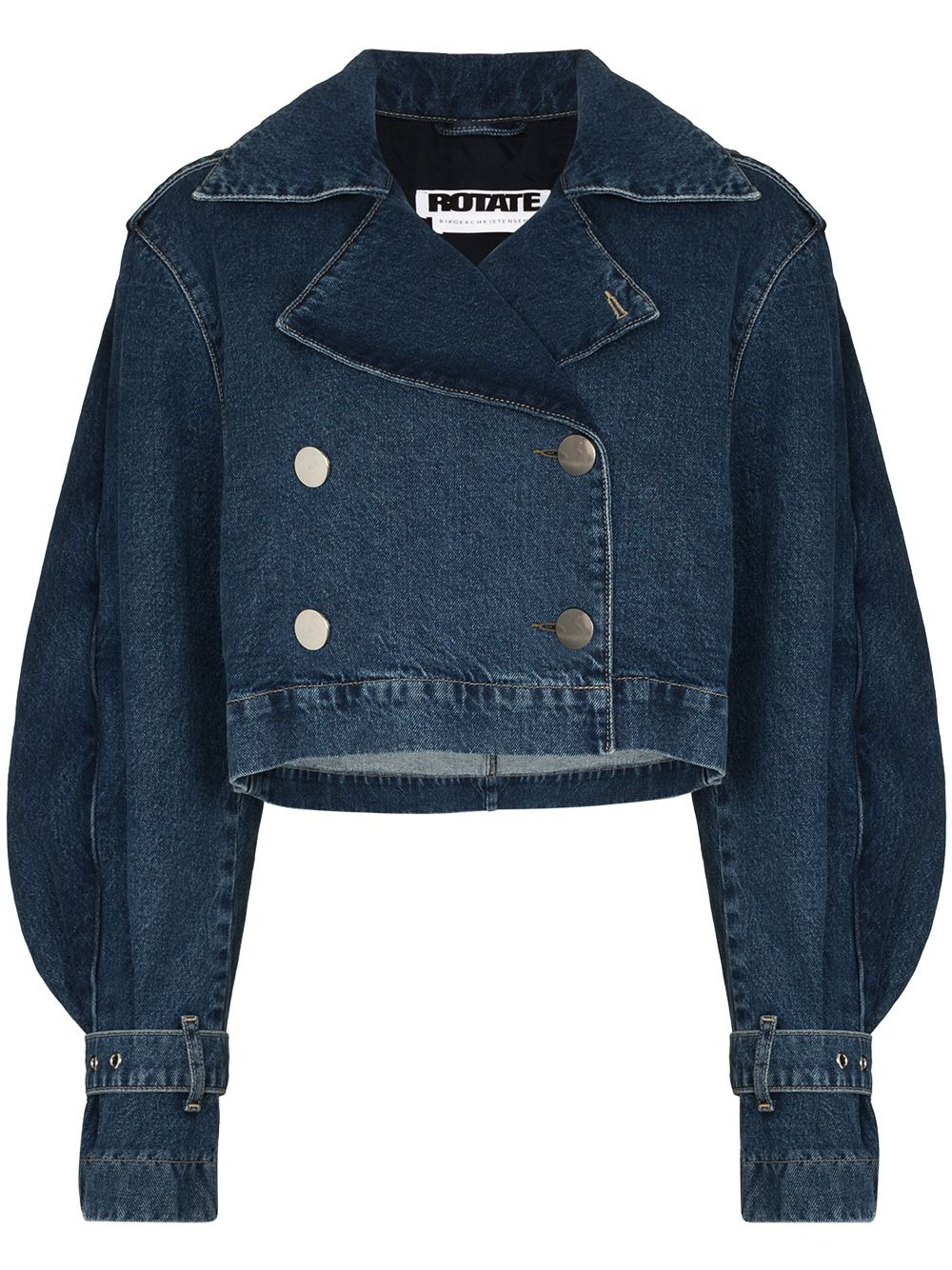 ruffle-trim cropped denim jacket Not a fan of ordinary denim jackets? This dark blue cotton ruffle trim cropped one from ROTATE will tick all your requirement boxes then. That's always good. Imported Composition Cotton 100% SIZE & FIT Model measurements Height 5 ft 11 in(1.8 m) Bust/Chest 31.49 in(80 cm) Hips 36.22 in(92 cm) Waist 25.59 in(65 cm) FittingInformation This piece fits small – you might want to get one size up Cut for a loose fit Made with a mid-weight fabric Washing instructions Dry Clean Only