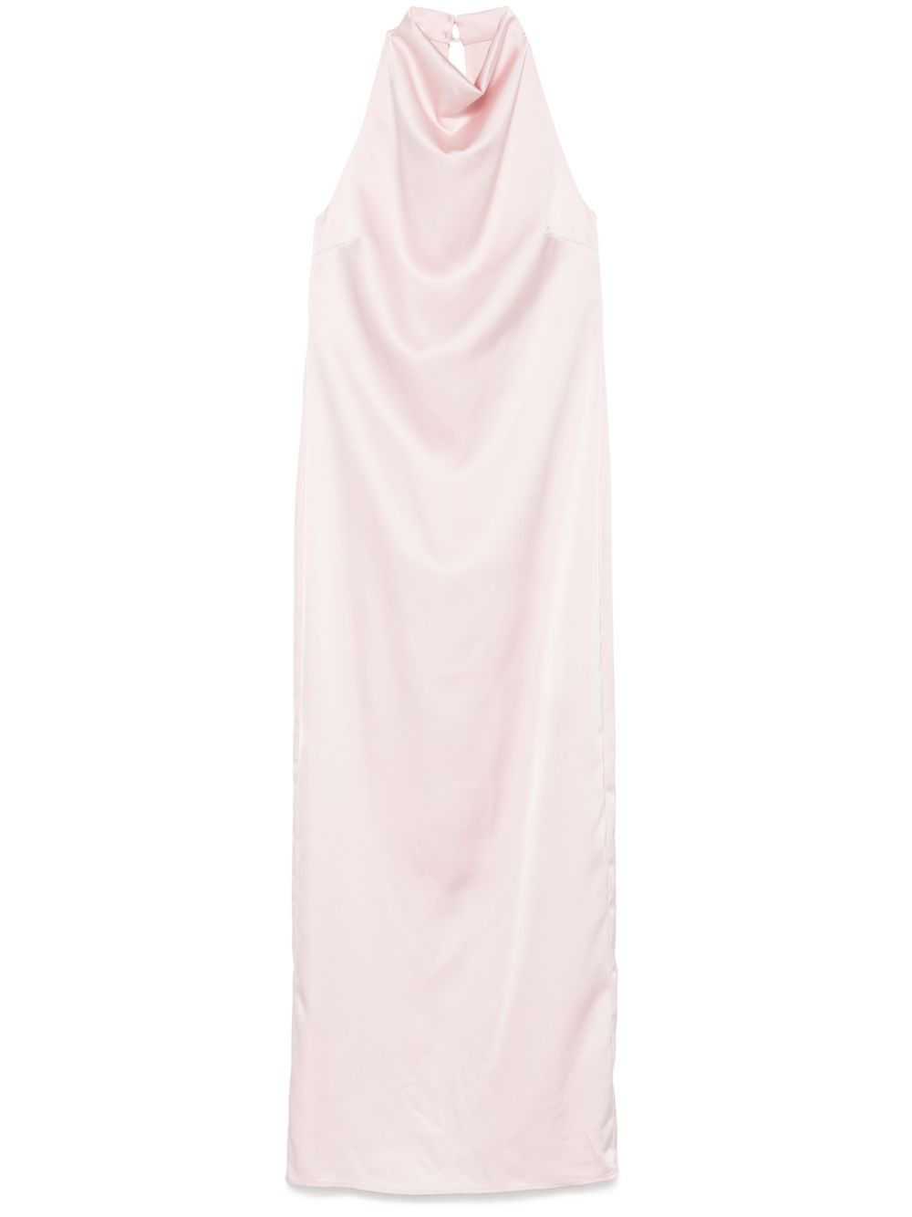 satin halterneck dress Highlights - Blush pink - Concealed rear zip fastening - Rear button fastening - Open back - Sleeveless Imported Composition Body: Polyester 1% Lining: SIZE & FIT Model measurements Height 5 ft 10 in(1.78 m) Bust/Chest 32.67 in(83 cm) Hips 35.43 in(90 cm) Waist 23.22 in(59 cm) FittingInformation Designed for a slim fit that sits just away from the body offering a close yet comfortable fit The dart stitching adds structure and a closer fit in the torso of this piece Made from a midweight fabric