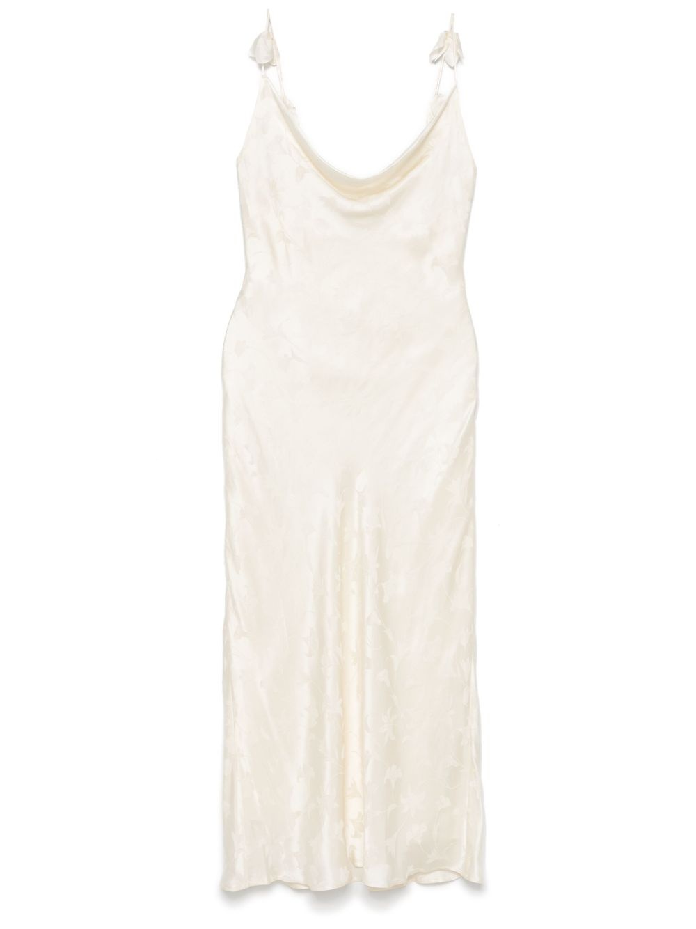 satin midi dress Highlights - Light beige - Concealed side zip fastening - Cowl neck - Floral applique - Sleeveless Imported Composition Lining: Polyamide 95%, Elastane 5% Outer: Silk 100% SIZE & FIT Model measurements Height 5 ft 9 in(1.75 m) Bust/Chest 31.88 in(81 cm) Hips 34.64 in(88 cm) Waist 24.01 in(61 cm) FittingInformation Designed for a slim fit that sits just away from the body offering a close yet comfortable fit Made from a midweight fabric Washing instructions Hand Wash