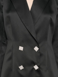 satin mini dress Highlights - Black - Satin weave - Double-breasted button fastening - Notched lapels - Shoulder pads - Long sleeves - Crystal-embellished buttons - Dart detailing - Italian rear vents - Full lining - Straight hem - Above-knee length Imported Composition Lining: Viscose 97%, Elastane 3% Outer: Polyester 100% SIZE & FIT Model measurements Height 5 ft 9 in(1.75 m) Bust/Chest 31.88 in(81 cm) Hips 34.64 in(88 cm) Waist 24.01 in(61 cm) FittingInformation Designed for a slim fit that sits just away from the body offering a close yet comfortable fit The internal shoulder pads offer a structured shape Made from a midweight fabric