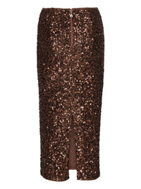 sequin-embellished midi pencil skirt Highlights - Brown - Sequin embellishment - Rear split - Pencil style - Rear zip fastening Imported Composition Outer: Recycled Polyester 99%, Elastane 1% Lining: Recycled Polyester 95%, Elastane 5% Washing instructions Read Manufacturer Guidelines