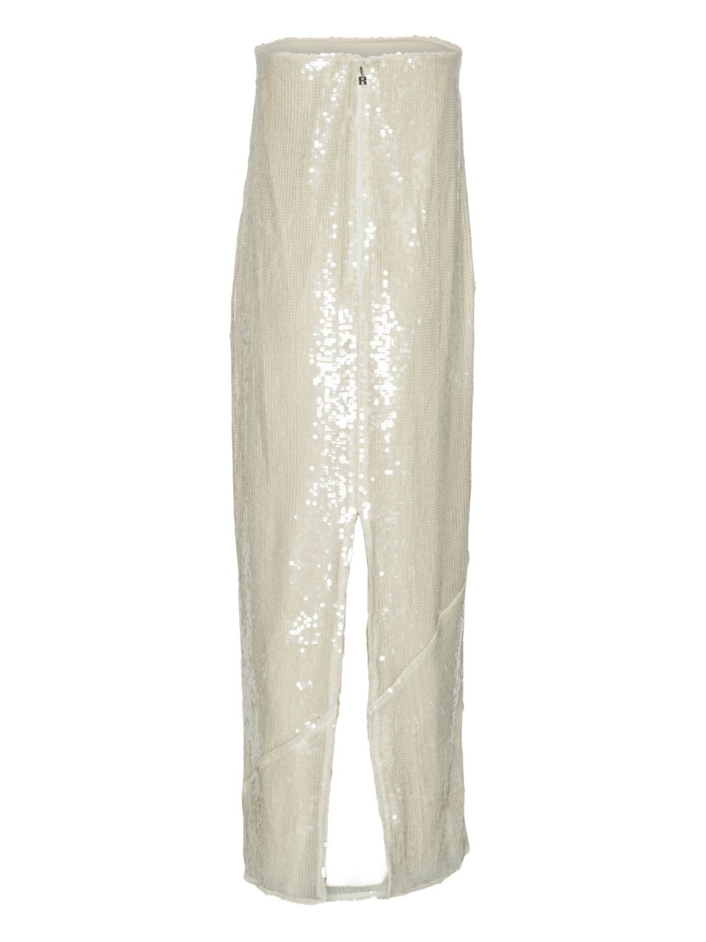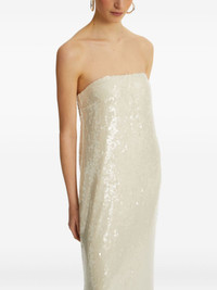 sequin maxi dress Highlights - Off-white - Sequin embellishment - Strapless neckline - Asymmetrical hem - Side slit - Maxi length Imported Composition Sequin 100%, Recycled Polyethylene 79%, Recycled Polyester 20%, Elastane 1% Washing instructions Dry Clean Only