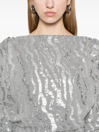 sequined mini dress Highlights - Grey - Recycled polyester blend - Jersey texture - Melange effect - Sequin embellishment - Zebra pattern - Boat neck - Shoulder pads - Ruched detailing - Draped detailing - Long sleeves - Fitted waistline - Full lining - Straight hem - Thigh-length Imported Composition Lining: Recycled Polyester 65%, Cotton 30%, Elastane 5% Outer: Recycled Polyester 65%, Cotton 30%, Elastane 5% SIZE & FIT Model measurements Height 5 ft 9 in(1.75 m) Bust/Chest 31.88 in(81 cm) Hips 34.64 in(88 cm) Waist 24.01 in(61 cm) FittingInformation Designed for a loose fit at the chest with a close fit over the waist and hips The internal shoulder pads offer a structured shape Made from a midweight stretch fabric, this piece offers elasticity and flexibility when worn