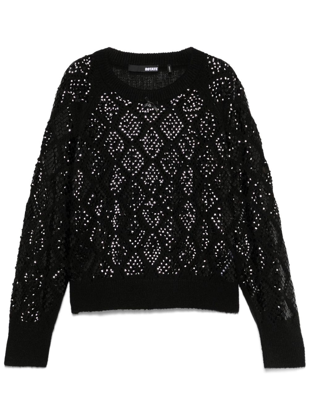 sequined sweater Highlights - Black - Crew neck - Long raglan sleeves - Ribbed cuffs and hem Imported Composition Polyethylene Terephthalate (PET) 100%, Polyacrylic 72%, Wool 18%, Polyamide 10% SIZE & FIT Model measurements Height 5 ft 11 in(1.8 m) Bust/Chest 32.67 in(83 cm) Hips 35.03 in(89 cm) Waist 25.19 in(64 cm) FittingInformation Designed to be unstructured, offering a loose fit throughout The ribbed hem offers a close, comfortable fit Made with a midweight knit, this piece offers some stretch Washing instructions Hand Wash