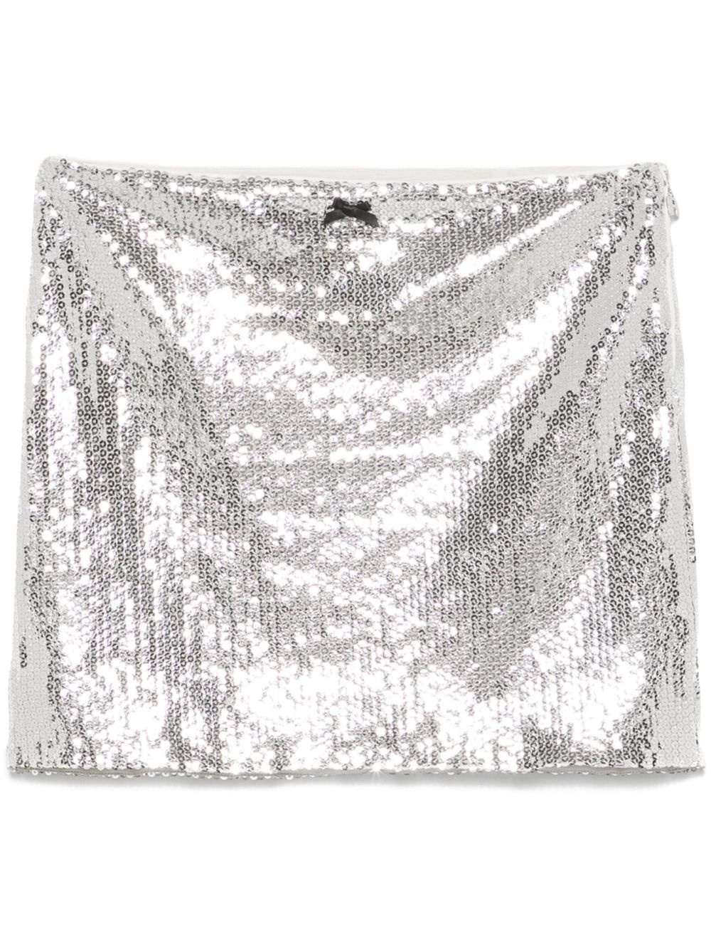 sequinned mini skirt Highlights - Silver-tone - Recycled polyester blend - Sequin embellishment - Concealed side hook and zip fastening - Mid-rise - Straight hem - Mesh lining - Above-knee length Imported Composition Outer: Polyester 100%, Recycled Polyester 95%, Elastane 5% Lining: Polyester 95%, Elastane 5% SIZE & FIT Model measurements Height 5 ft 10 in(1.78 m) Bust/Chest 31.49 in(80 cm) Hips 37 in(94 cm) Waist 23.62 in(60 cm) FittingInformation This mini-length skirt is intended to be worn just below the waist Made from a midweight fabric Washing instructions Hand Wash