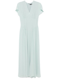 V-neck maxi dress Highlights - Light blue - Concealed rear zip fastening - Gathered detailing - Cap sleeves - Full lining Imported Composition Lining: Polyester 100% Outer: Recycled Polyester 55%, Polyester 45% SIZE & FIT Model measurements Height 5 ft 9 in(1.76 m) Bust/Chest 32.28 in(82 cm) Hips 35.43 in(90 cm) Waist 25.19 in(64 cm) FittingInformation Designed for a close fit at the chest and waist with a loose fit at the hip Made from a midweight non-stretch fabric