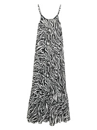 x Reina Olga zebra-print maxi dress Highlights - Black/white - Recycled polyester - Crepe texture - Semi-sheer construction - Zebra print - Adjustable spaghetti straps - Sleeveless - V-neck - Two side inset pockets - Full-length - Ruffle hem - Unlined - Front button fastening Imported Composition Recycled Polyester 100%