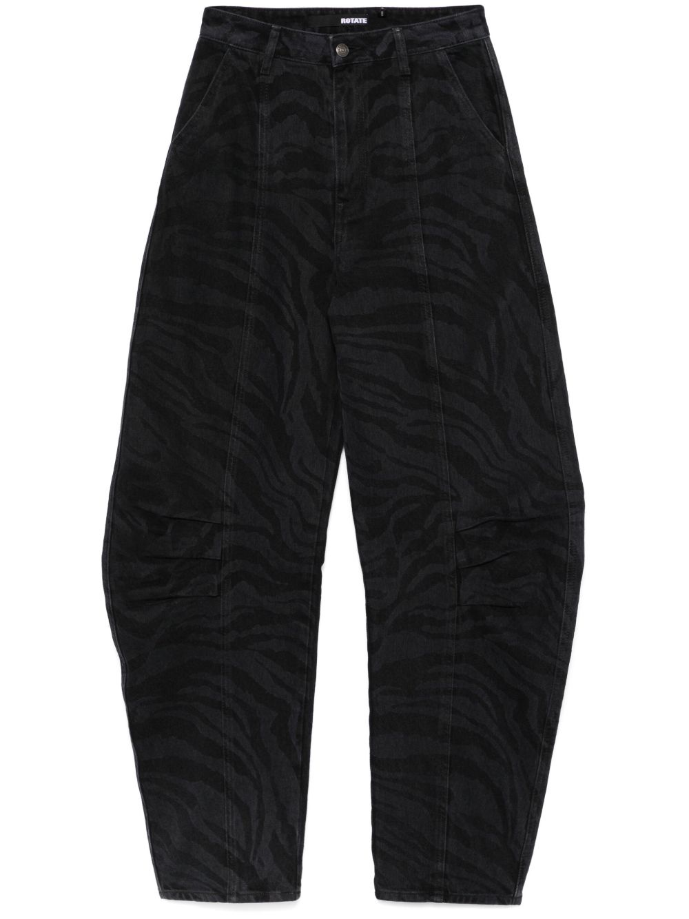 zebra twill trousers Highlights - Black - Recycled cotton - Twill weave - Zebra print - Front button and zip fastening - Belt loops - Two diagonal pockets to the sides - Seam detailing - Pleat detailing - Logo patch to the rear - Tapered leg Imported Composition Recycled Cotton 100% SIZE & FIT Model measurements Height 5 ft 9 in(1.75 m) Bust/Chest 31.88 in(81 cm) Hips 34.64 in(88 cm) Waist 24.01 in(61 cm) FittingInformation Designed with a wide-leg cut, these trousers allow for a close fit at the waist and offer a loose and roomy fit over the leg Made from a midweight non-stretch fabric Washing instructions Machine Wash